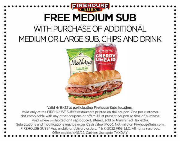 Firehouse Subs Rewards Members Free Medium Sub W Purchase Of Medium Or Large Sub Chips